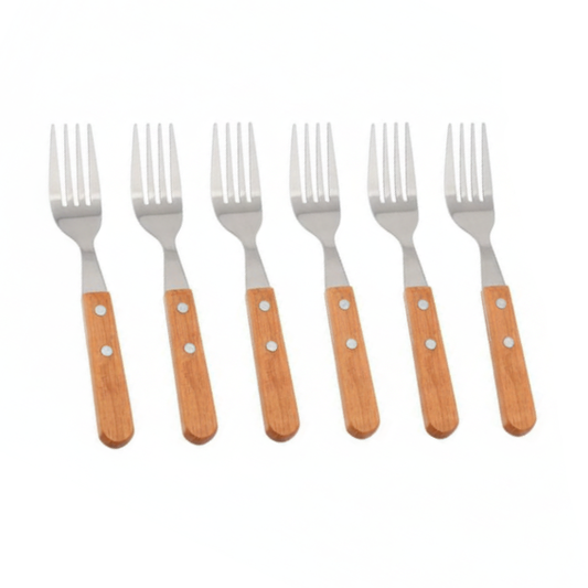 Fork With Wooden Handle - 6 piece