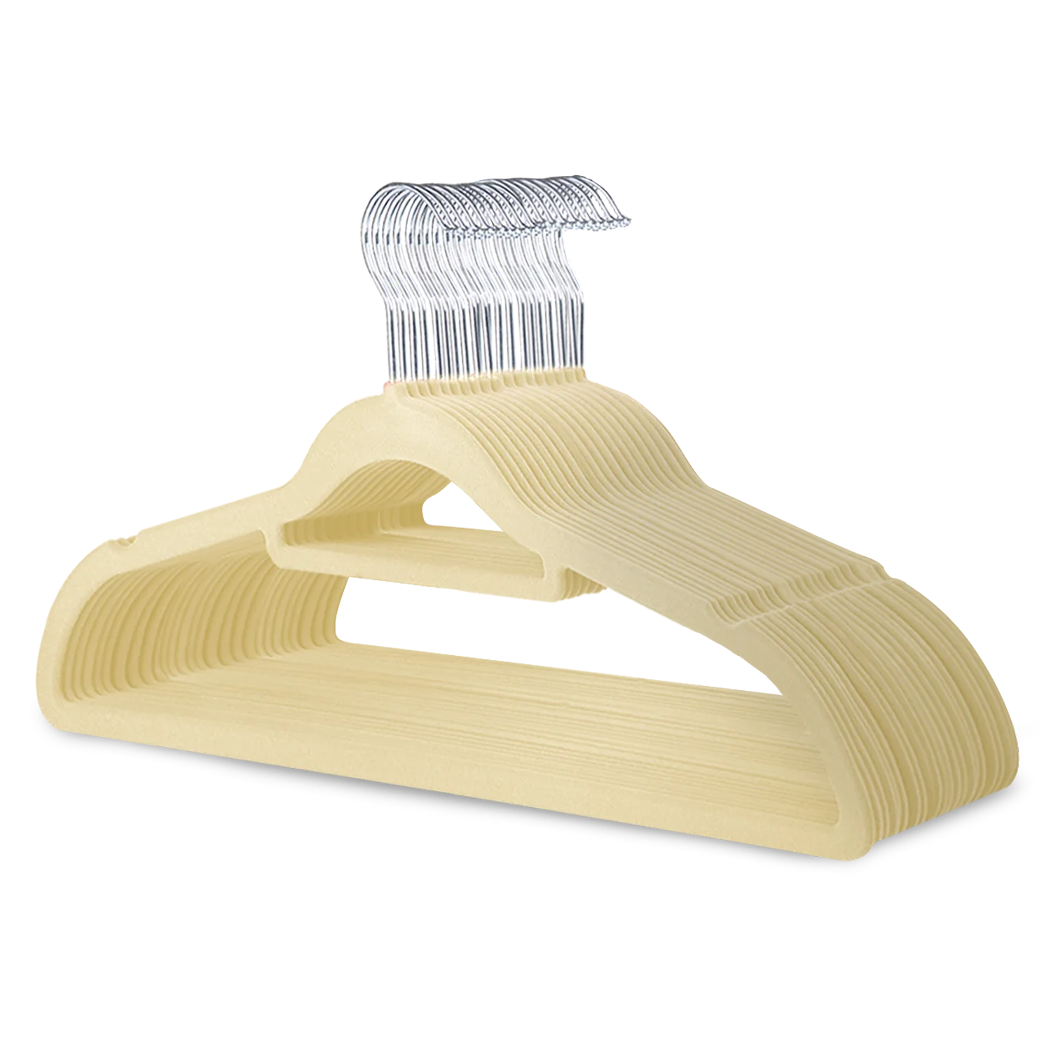 Keep your clothes neatly organized and off the floor with our set of 25 non-slip velvet hangers. The soft velvet material prevents clothes from slipping off, while the slim design maximizes closet space. Say goodbye to wrinkled or damaged clothes and hello to a clutter-free closet.
