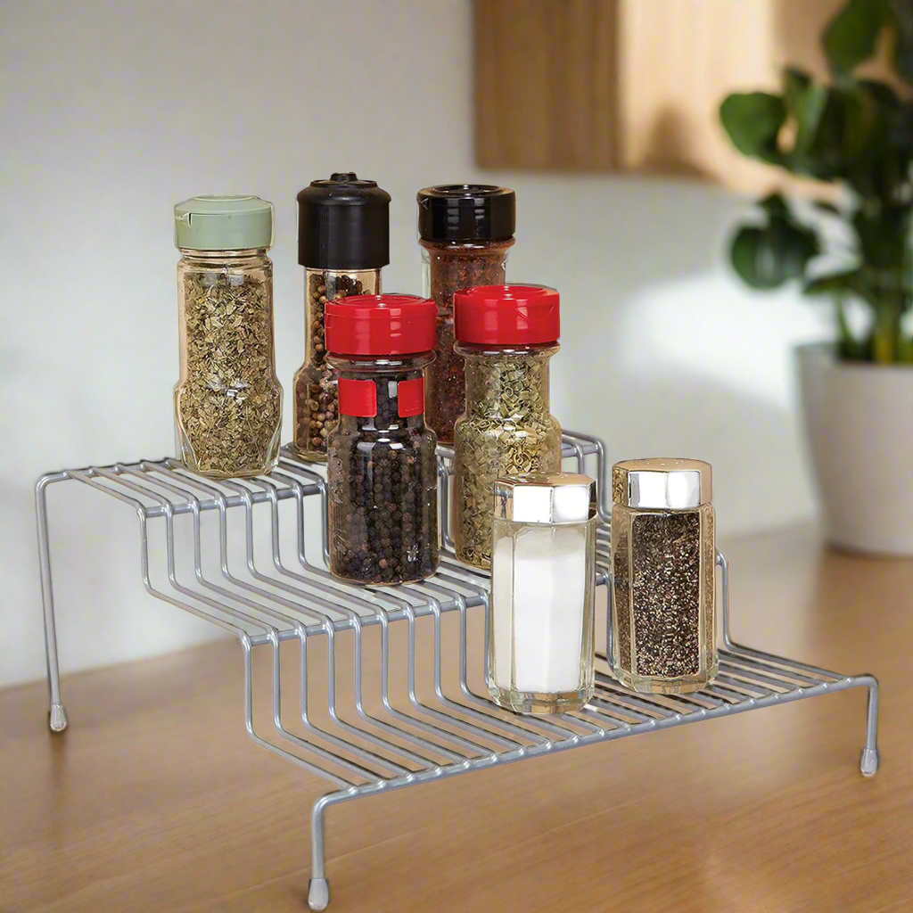 Maximize your kitchen space with this 3 Tier Spice rack, designed to keep your spices neatly organized and easily accessible. Measuring 26x24.75x11.5cm, it fits comfortably on countertops or inside cabinets. Its three tiers provide ample storage while maintaining a compact footprint, helping you streamline meal prep and reduce clutter. Elevate your cooking experience with this practical and stylish addition to your kitchen.