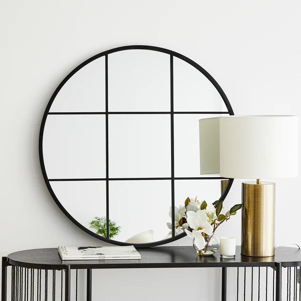 Make a bold statement with this striking Black Mirror. Measuring 90x3x90cm, its sleek frame and expansive reflective surface create an instant focal point in any room. Perfect for expanding visual space and adding contemporary elegance to bedrooms, living areas, or entryways.