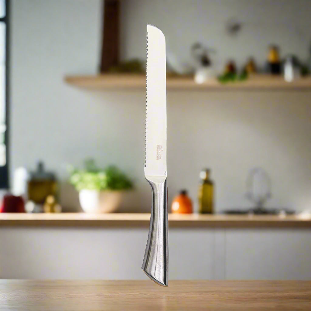 This stainless steel bread knife offers precision and durability, making slicing through crusty loaves effortless. Its sharp, corrosion-resistant blade ensures clean cuts every time, preserving the texture of your bread while enhancing your kitchen experience. Designed for comfort and control, this knife is a reliable tool for both casual bakers and professionals.