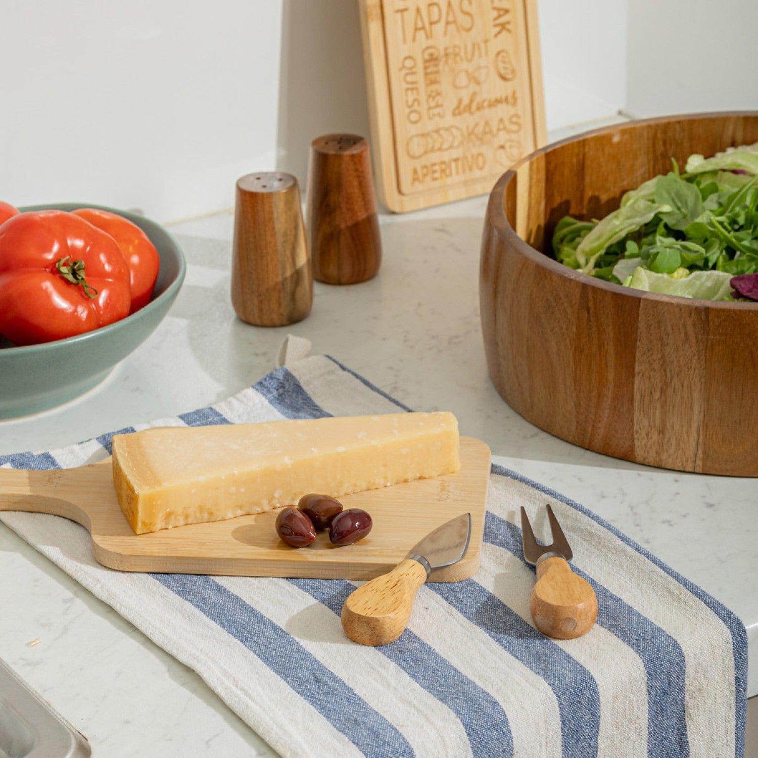 Elevate your entertaining with this versatile bamboo serving plate, thoughtfully designed for both style and function. The natural wood construction brings warmth to any table setting while remaining durable enough for everyday use. Complete with practical accessories, this set simplifies food presentation and makes hosting effortless. Perfect for cheese boards, charcuterie displays, or serving appetizers, it's an essential addition to any home.