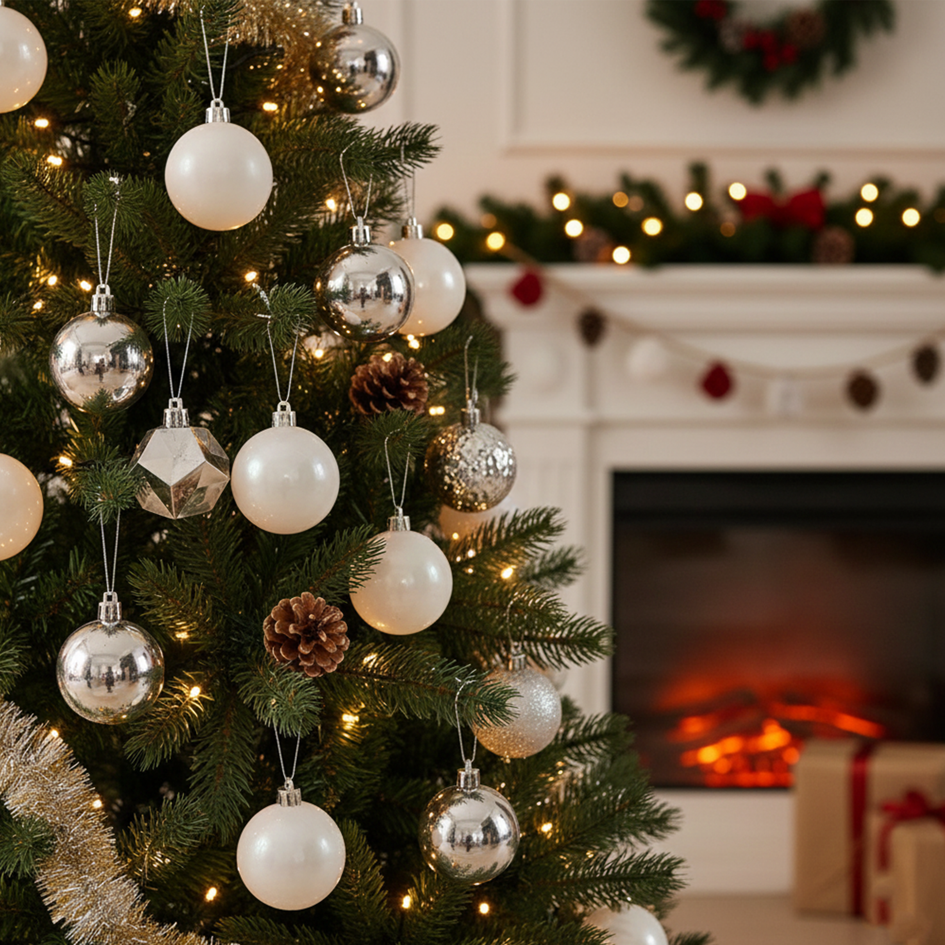 Elevate your festive décor with our stunning Silver Christmas Balls—a timeless collection of 25 shimmering ornaments that bring elegance and sparkle to any tree. Each ball catches the light beautifully, creating a cohesive, sophisticated look that transforms your holiday display. Perfect for layering with other decorations or standing alone as a statement piece, these versatile baubles work seamlessly with any color scheme. Durable and reusable year after year, they're an investment in lasting holiday magic that your family will treasure for generations to come.