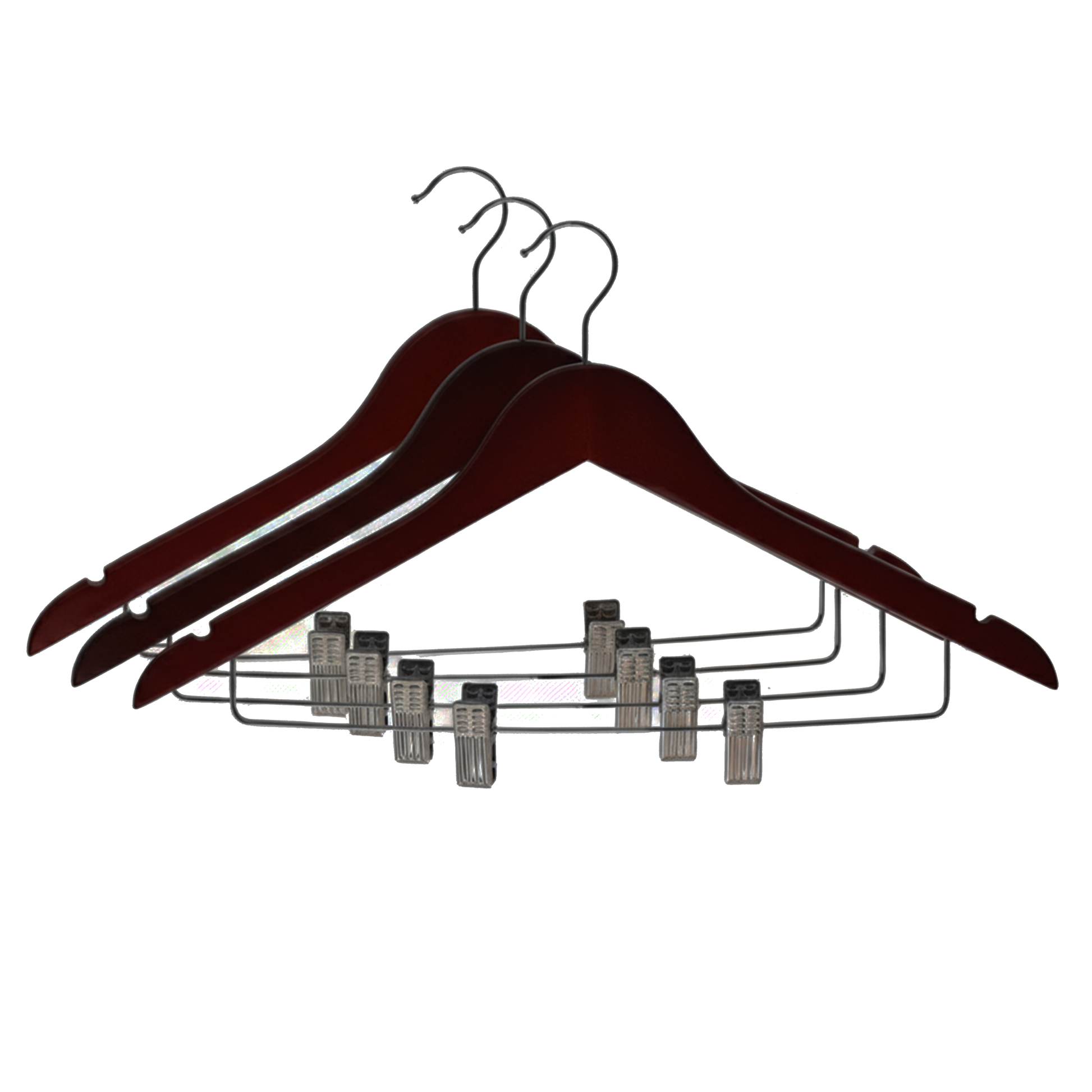 3 Wooden Hangers W/Clips